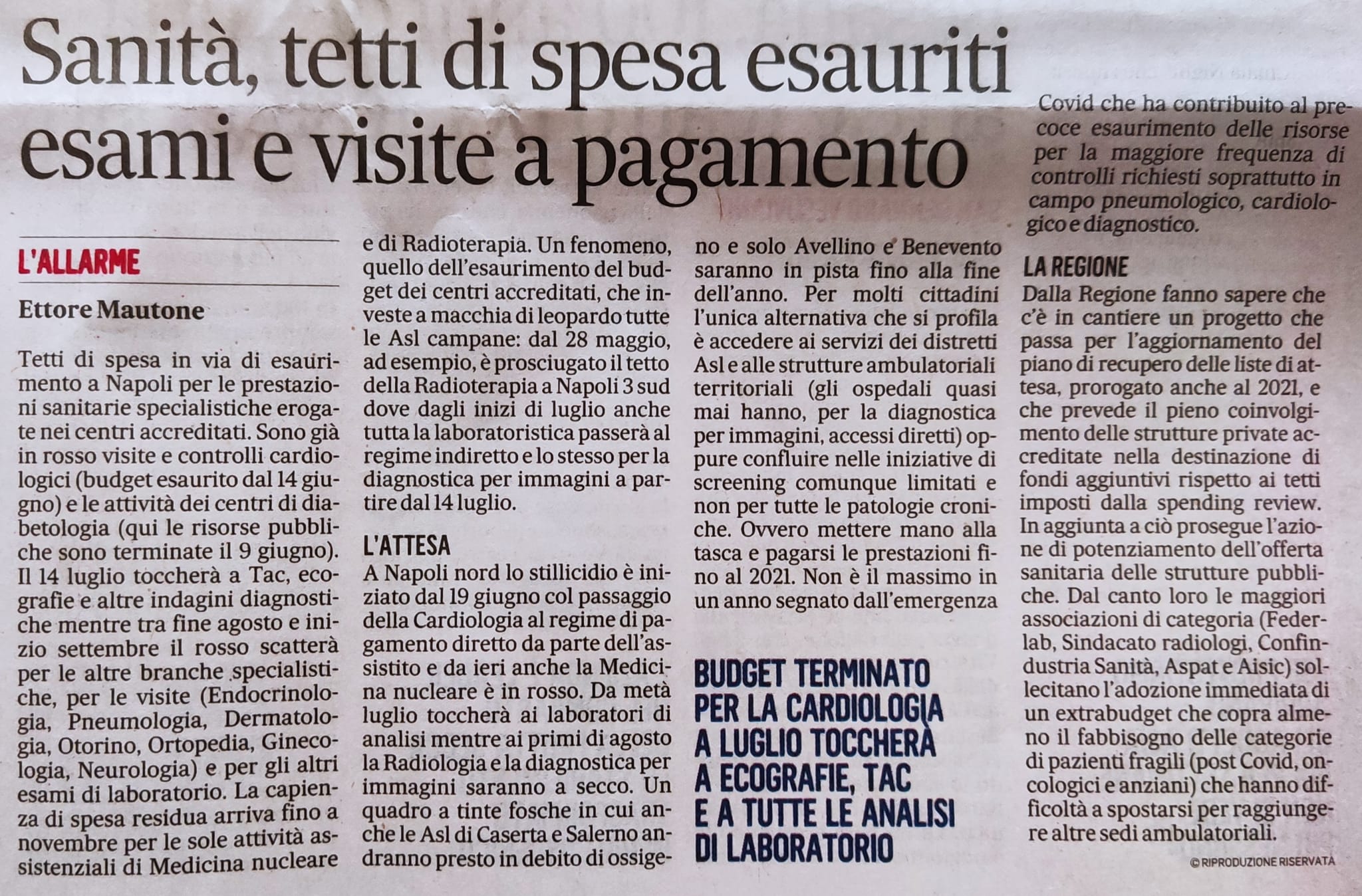 REGIONE CAMPANIA. Macroarea Specialistica Ambulatoriale. STOP erogativi di tutte le Branche del comparto privato accreditato (vedi tabella sinottica aggiornata). Approvata all’unanimità in Consiglio Regionale la MOZIONE – APPELLO al Governo Centrale per utilizzo fondi DL Sostegni bis. Informativa resa dall’ Assessore Ettore Cinque sui “tetti prestazionali aggiuntivi”. Il Comunicato Stampa di ASPAT e Cittadinanzattiva Campania. Le interviste del 15 – 16 luglio sull’argomento di radio CRC network Italia – DT canale 620 e de Il Mattino.it ed altri canali (*pubblichiamo in progress la documentazione sull’argomento).