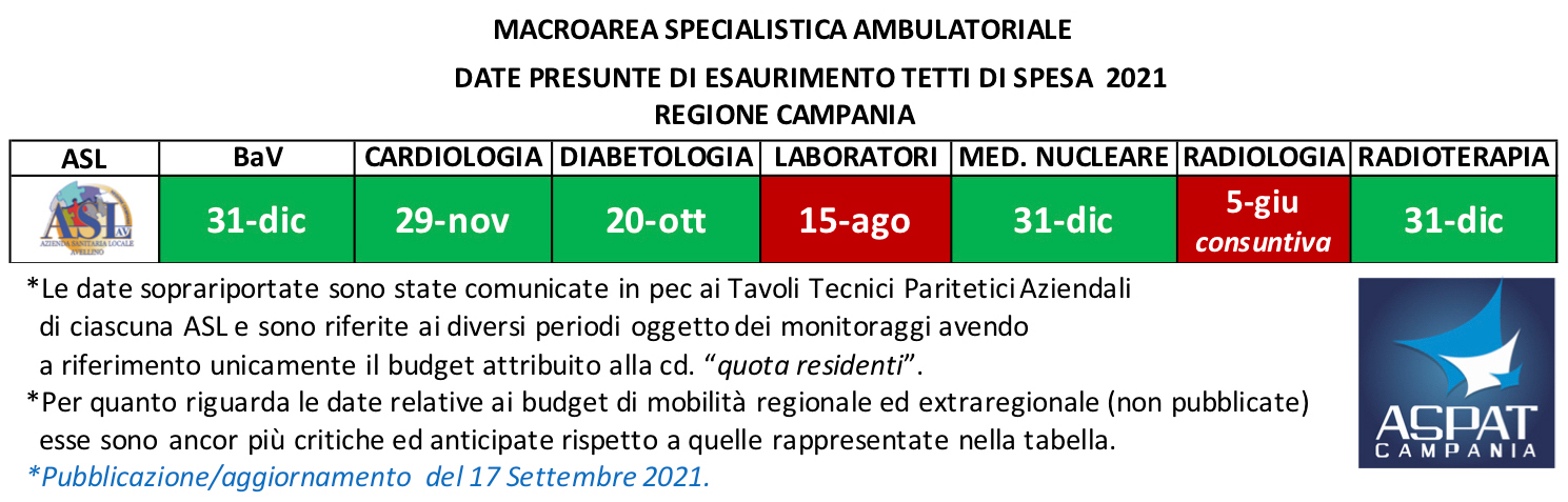 ASL AVELLINO. Macroarea Specialistica Ambulatoriale – Branca Patologia Clinica. Monitoraggio tetti di spesa al 31 Luglio 2021 (aggiornata la tabella sinottica).
