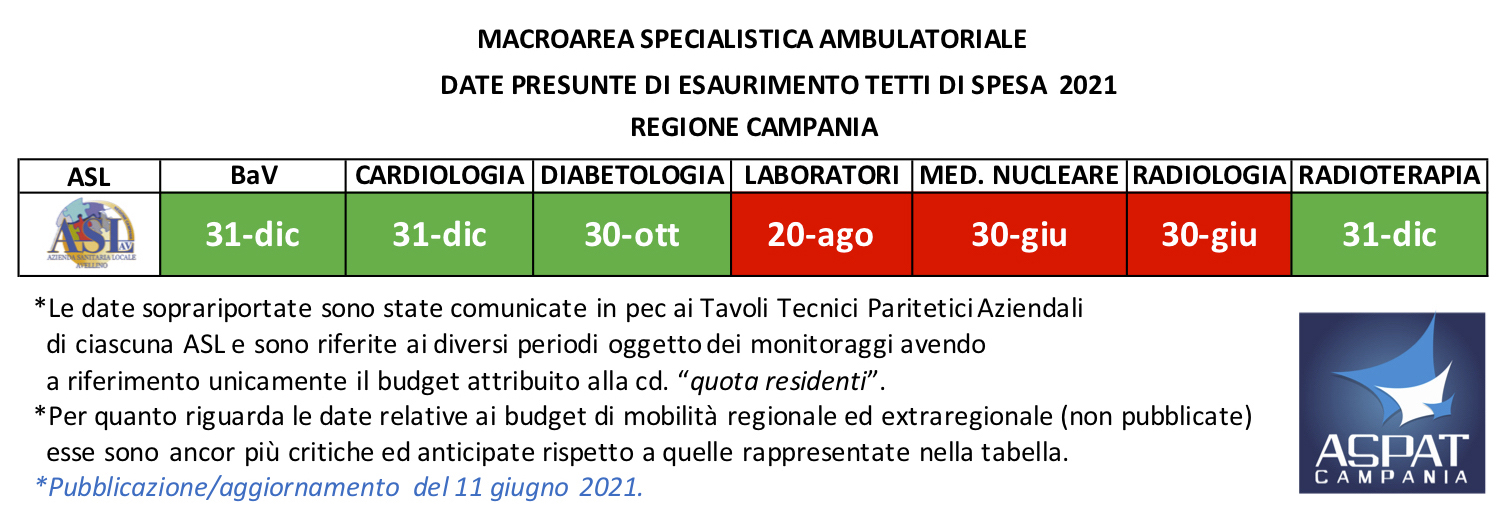 Al momento stai visualizzando ASL AVELLINO. Macroarea Specialistica Ambulatoriale. Monitoraggio tetti di spesa al 30 aprile 2021 (aggiornata la tabella sinottica).
