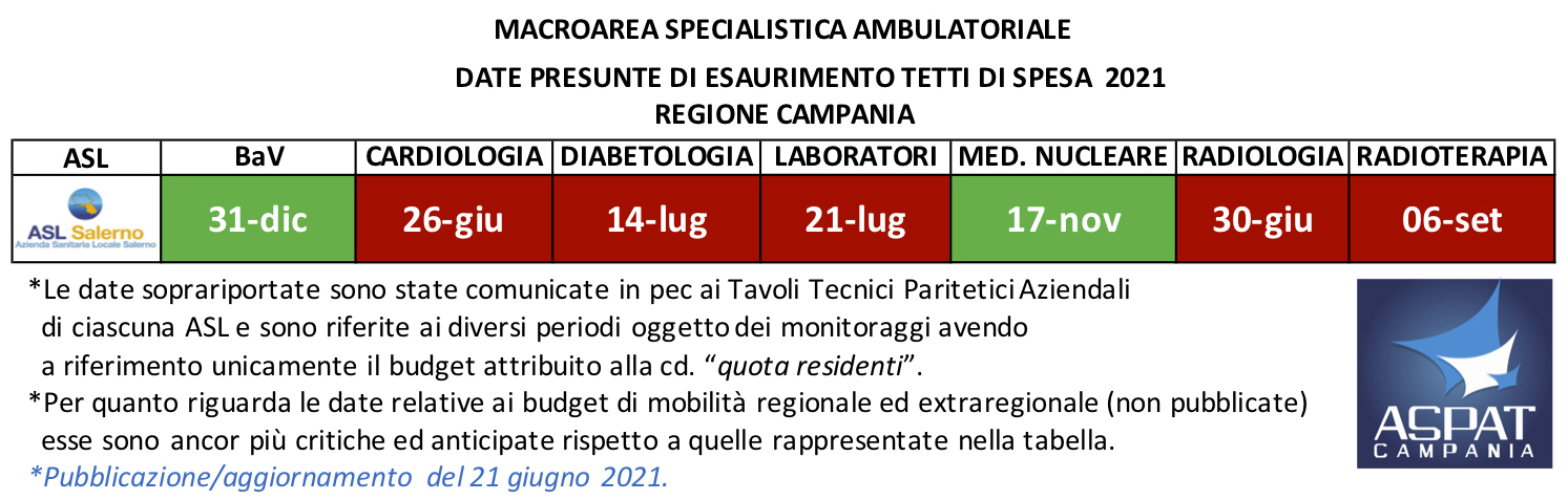 Al momento stai visualizzando ASL SALERNO. Macroarea Specialistica Ambulatoriale. Monitoraggio Tetti di spesa al 31/05/2021 (aggiornata la tabella sinottica).